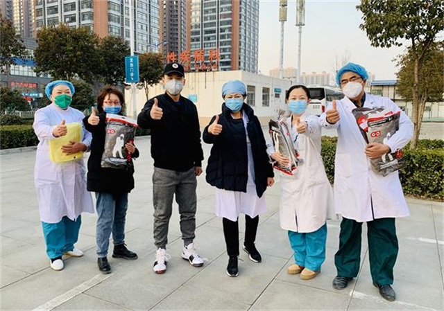 2月3日下午,邯郸市翻译协会为市中心医院传染性疾病科捐赠防护隔离服。近些天来,翻译协会负责同志一直在想如何为抗战瘟疫的医务部门做些奉献。他们利用协会成员与生产医用防护服厂家有关系的便利条件,购买了二十套防护隔离服。下午五点防护服运抵邯郸后,翻译协会副会长、易贝斯教育联合创始人韩磐(左三),代表翻译协会和社会公益人士,把防护服送给了中心医院传染性疾病科。 邯郸市中心医院 张 序 摄影