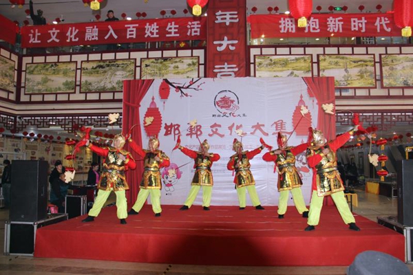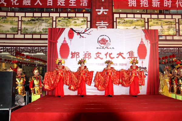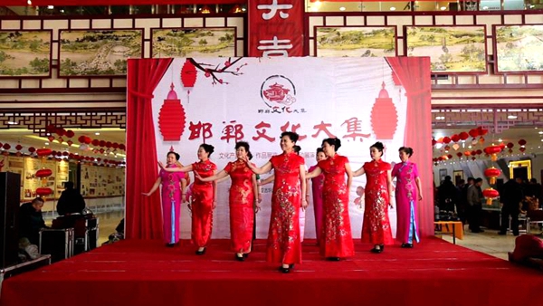 由邯郸市委宣传部、邯郸市文广新局、邯郸日报社、邯郸广播电视台、邯郸市文联主办的,由邯郸艺亚古玩城承办的2018年邯郸文化大集,以“拥抱新时代、共享新生活”为主题,以邯郸文化大集开集为背景,充分展示邯郸文化市场丰富多彩的精致产品和手工艺术以及书画、文玩等文化创意产业, 2018 年 1月 14日是邯郸市群艺馆和邯郸市模特协会共同举办的专场,参加演出的有邯郸市精彩世界模特队、邯郸市文华艺术团、邯郸市蓝月舞蹈团,此时此刻,天寒地冻我们的演员身穿演出单衣,激情高昂,用饱满和热情把才艺展现给大家,为邯郸观众,为丰富发展邯郸大集,为邯郸大集的蒸蒸日上蓬勃发展,发挥着自己的光和热。