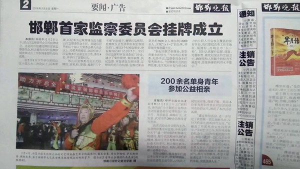 邯郸晚报2月5日在新闻版刊出新闻照片,模特表演《胡服骑射》