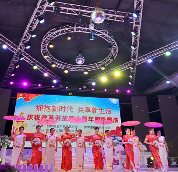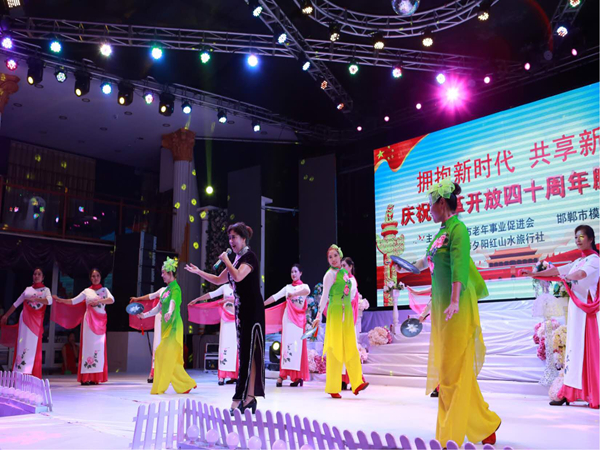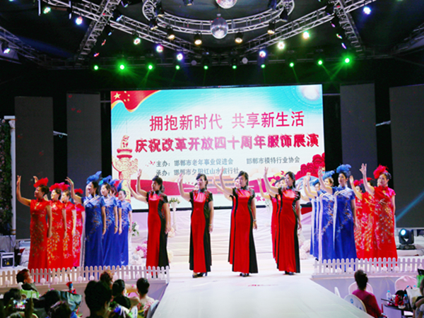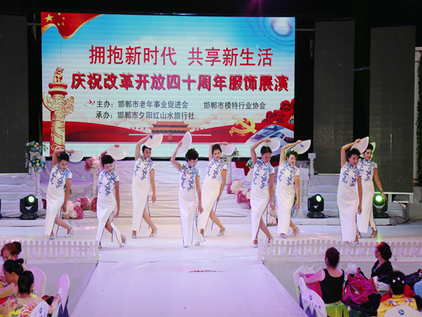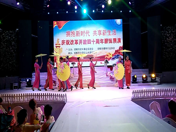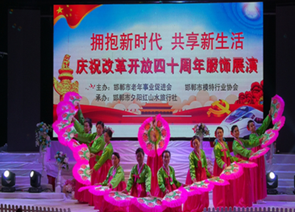 邯郸市模特行业协会和老年事业促进会在喜宴大酒店共同举办庆祝改革开放四十周年服饰展演,目的就是充分展示模特艺术发展成就,展示中老年健康向上的精神风貌,总结和检验改革开放成果,更好地促进中老年事业的发展,提高人们的生活质量。