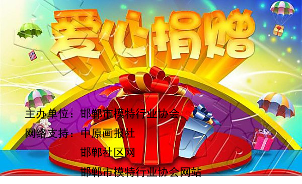 3.网友捐赠的物品不能亲自到现场参加捐助活动的,我们有专人负责,保证您的物品送到受捐者手中,并在邯郸社区网,邯郸市模特行业协会网站,公布现场捐赠情况及捐赠人。