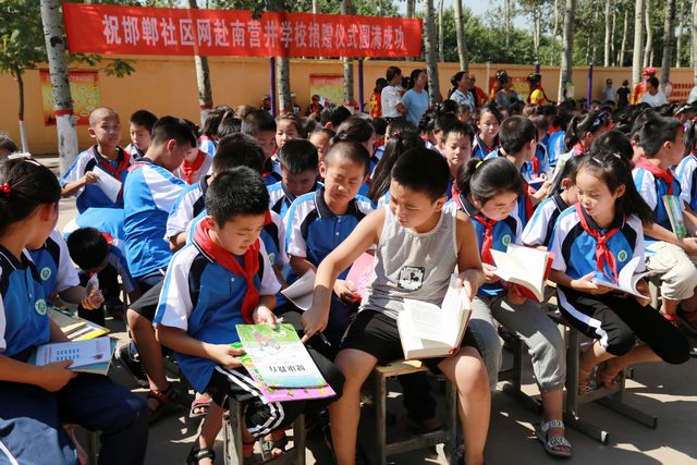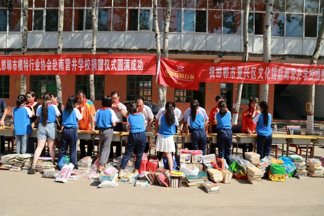 经过各单位、团队、个人几天的踊跃捐赠,在9月8日上午一行车队把满载爱心的各类知识书籍和学习用品送到了武安南营井学校孩子们手中,学校举行了热烈的欢迎仪式,校领导表示:你们送来的不仅仅是学习用品和书籍,你们送来的是关爱儿童,关爱下一代成长的一颗赤热的心,并代表全体老师和学生对无私奉献的每一位捐献人员表示衷心的感谢。