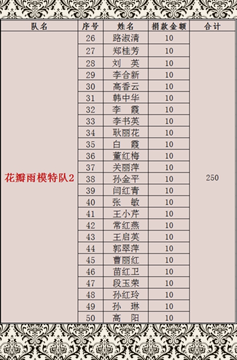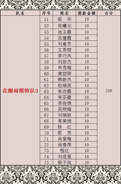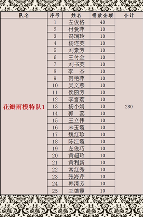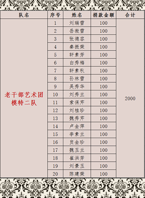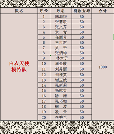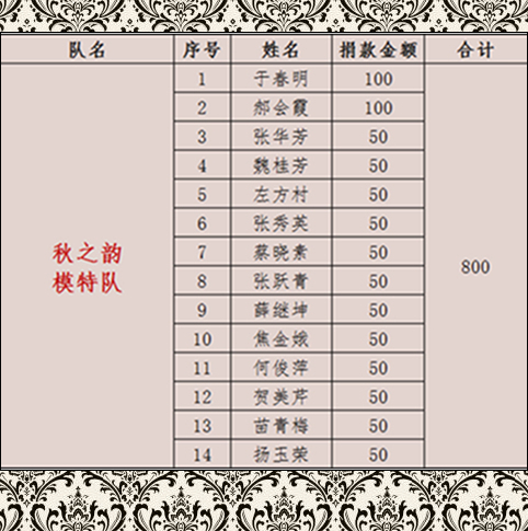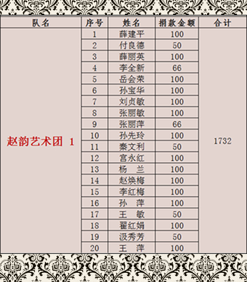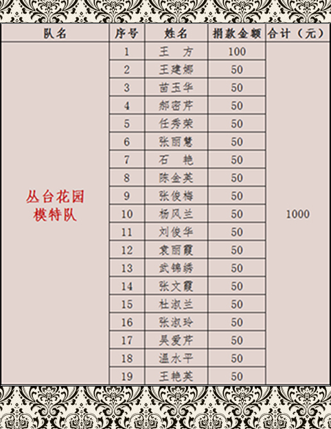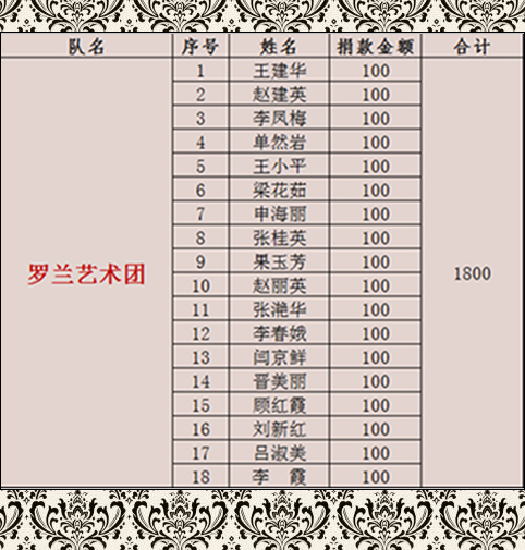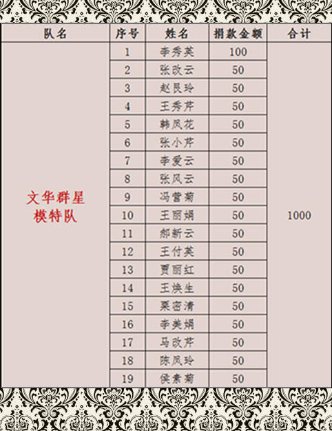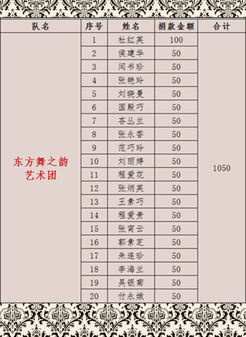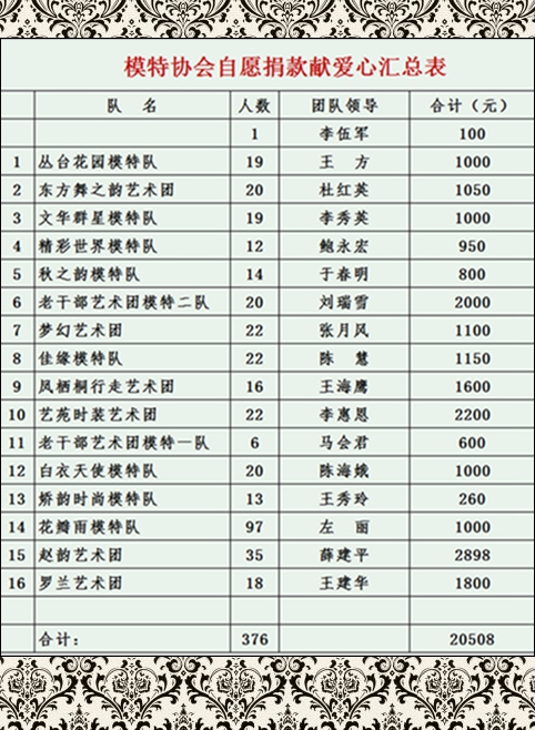 现将协会捐款票据、捐赠证书以及各队具体捐献的人员、金额按各团体捐款的先后顺序公示如下: