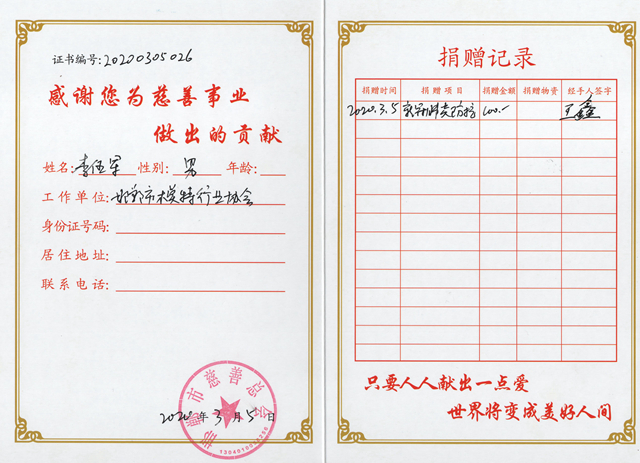一方有难八方支援,武汉疫情不仅牵动全国人民的心、牵动着邯郸人民的心,也深深牵动着我们邯郸市模特行业协会众多会员的心。为了助力武汉打赢疫情防控阻击战,协会响应党的号召,在协会党支部、协会会员中掀起了踊跃捐款、支持抗新冠肺炎疫情一线的自愿捐款活动,短短几日的爱心募捐,就有300多人参与其中,