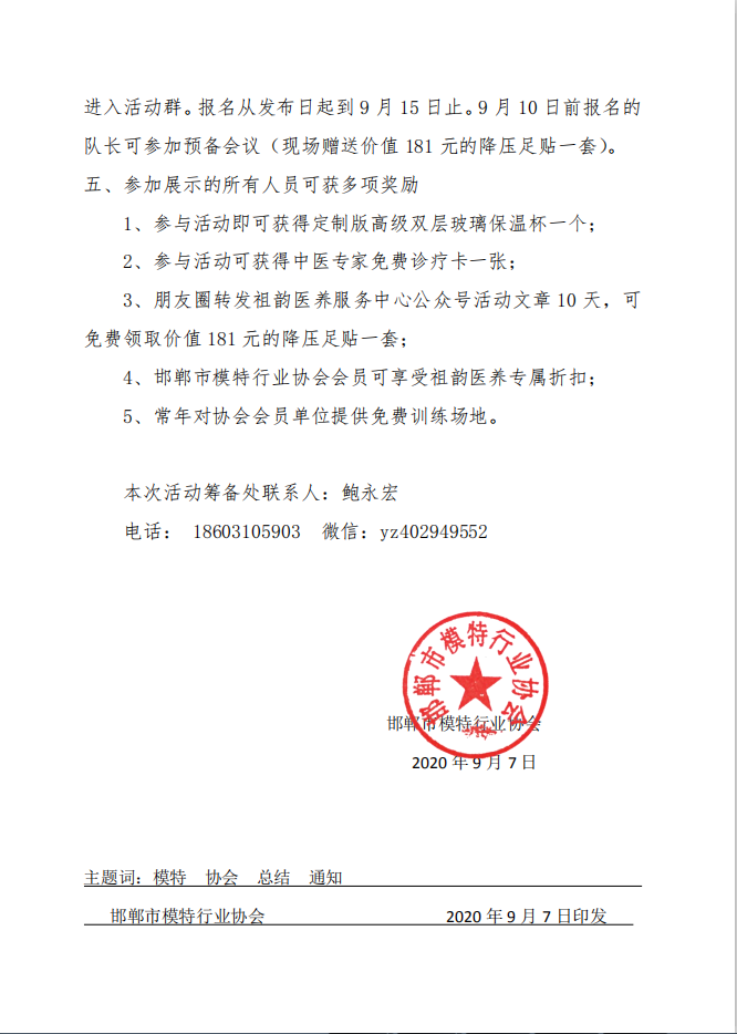 关于举办“中秋浓情 欢乐国庆 喜迎双节” 首届邯郸市祖韵医养大型服饰展示的通知