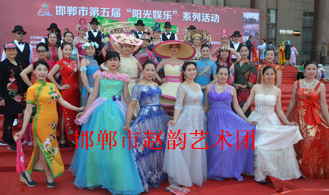 赵韵艺术团成立于2010年,经过9年的努力不断发展壮大,有团员96人,平均年龄55岁,是一只朝气蓬勃,团结向上充满正能量的团队,经常活跃在各种舞台上,积极参加省市宣传部组织的各项大型公益活动,为促进社会和谐做出了我们的贡献!几年来,赵韵艺术团参加了各种大赛,取得了优异成绩,获得:首届河北省中老年艺术大赛金奖,团体最佳气质奖!2018北京鸟巢国际中老年时装周最高奖:团体特等金奖;团体最佳活力奖,二人晋级全国男女模特十强!2019金石“融錦楼”电视模特大赛冠军!曾获得:“华丽霓裳”全国服饰艺术超级模特大赛团体金奖,个人比赛三人获一等奖;2018中国旗袍总会河北旗袍协会首届旗袍锦标赛团体亚军,获得“儒风旗韵”全国旗袍模特大赛名媛组第一名,并且代表邯郸远赴新加坡进行文化交流获得好成绩,是邯郸市第一只赴香港参赛的团队,并且获得香港璀璨夕阳中老年才艺大赛一等奖,等等~~,平时有自己的活动场地,每周3天的训练风雨无阻!